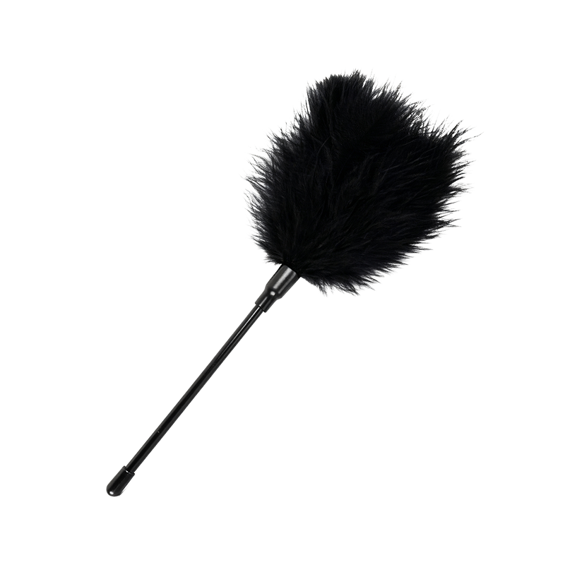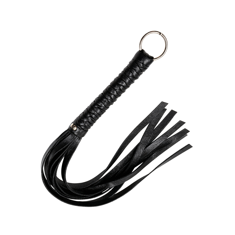 5. Explore sensations with the feather whip for softness, then build to the leather whip for intensity.